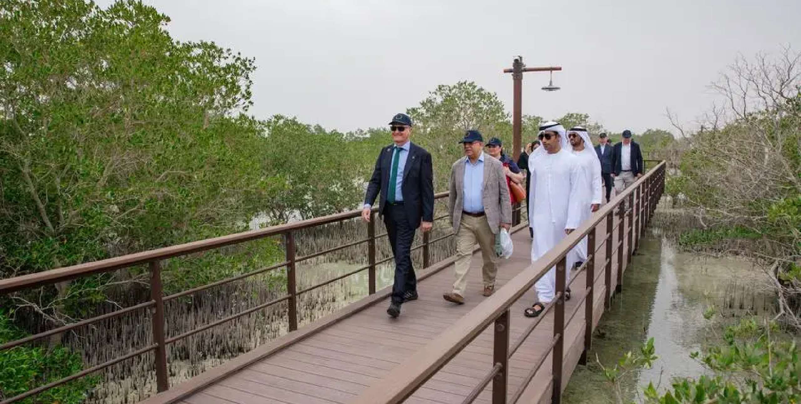 During the visit, the delegation was given a guided tour of Jubail Mangrove Park, where they learned more about the important role of mangroves in mitigating climate change. They also had the opportunity to plant several mangrove trees alongside youth participants.