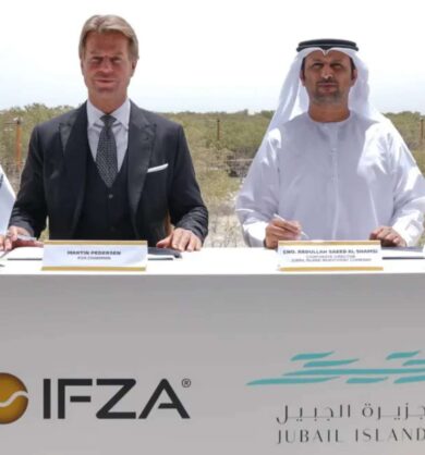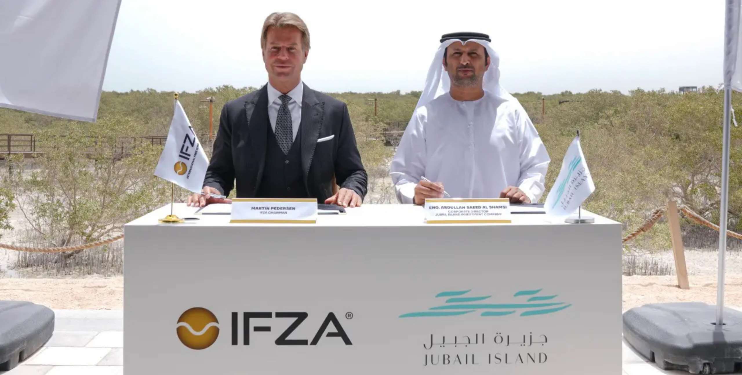 The Memorandum of Understanding was signed during a ceremony held at Jubail Island’s Mangrove Park in Abu Dhabi, with the participation of Martin G. Pedersen, Chairman of IFZA, alongside Eng. Abdullah Saeed Al Shamsi, Corporate Director of Jubail Island Investment Company.