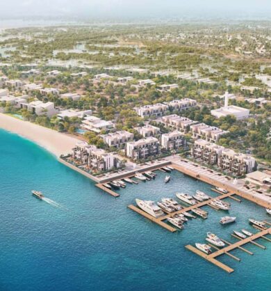 Set among the mangrove forests, the marina community’s gleaming white yachts and striking contemporary architecture will provide residents with a tranquil lifestyle with the 65-berth marina surround by a promenade that culminates in a perfect sunset observation point at the western end.